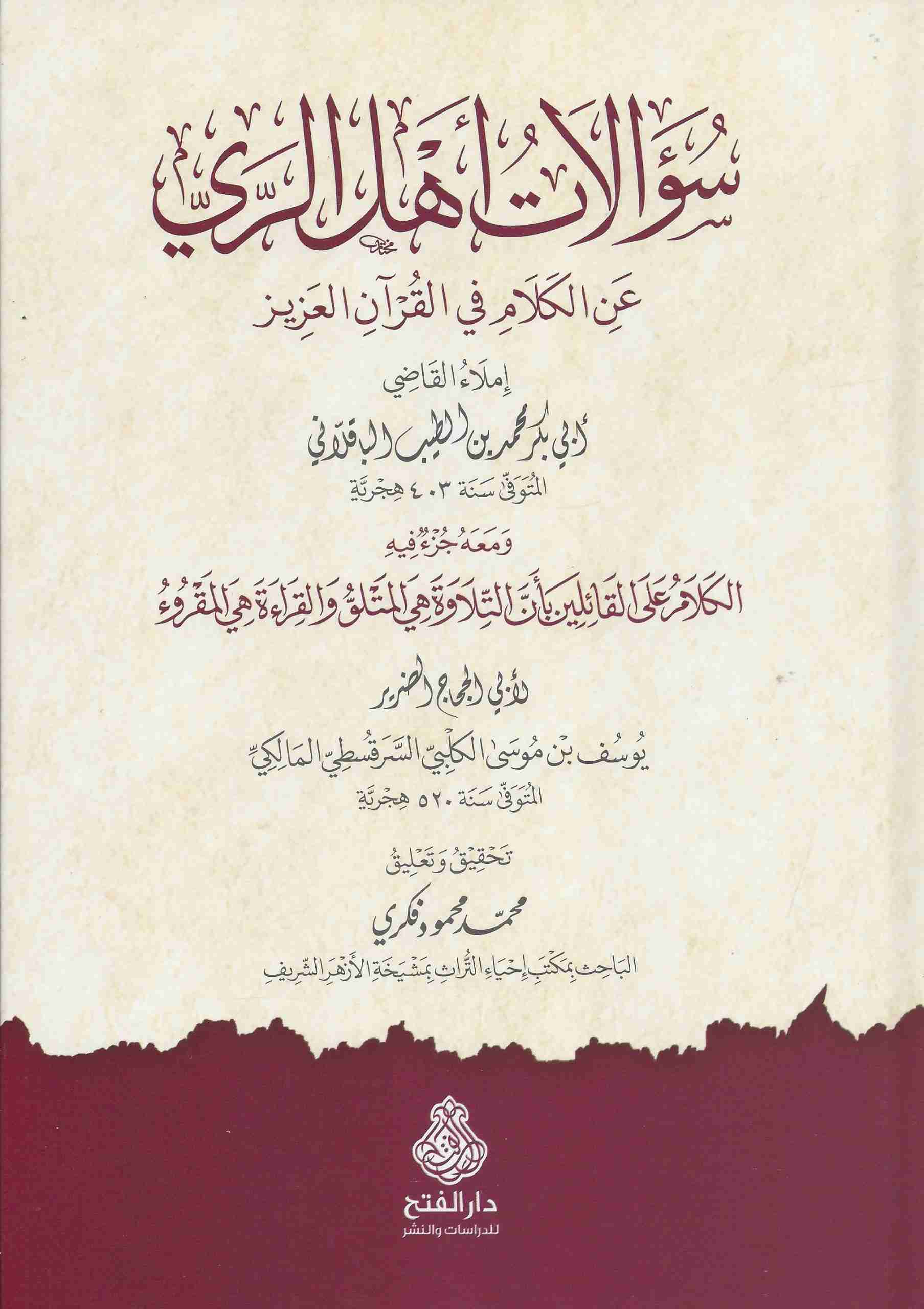 سؤالات أهل الري عن الكلام في القرآن العزيز ويليه الكلام على القائلين ان التلاوة هي المتلو وان القراءة هي المقروء